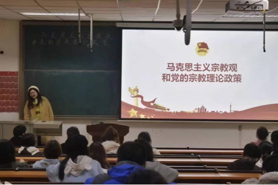 团课中,李欣老师详细介绍了马克思主义宗教观和党的宗教政策,结合马克思主义宗教观,了解了宗教的起源、本质,重点说明了分清宗教与邪教的区别,以客观正确的态度对待宗教,加强优秀民族文化的学习。李欣老师引导同学们要不断增强对马克思主义的信仰、对共产主义的信念、对中国特色社会主义的信心,帮助同学们明辨是非,学会运用马克思主义立场、观点和方法正确认识和对待宗教问题。