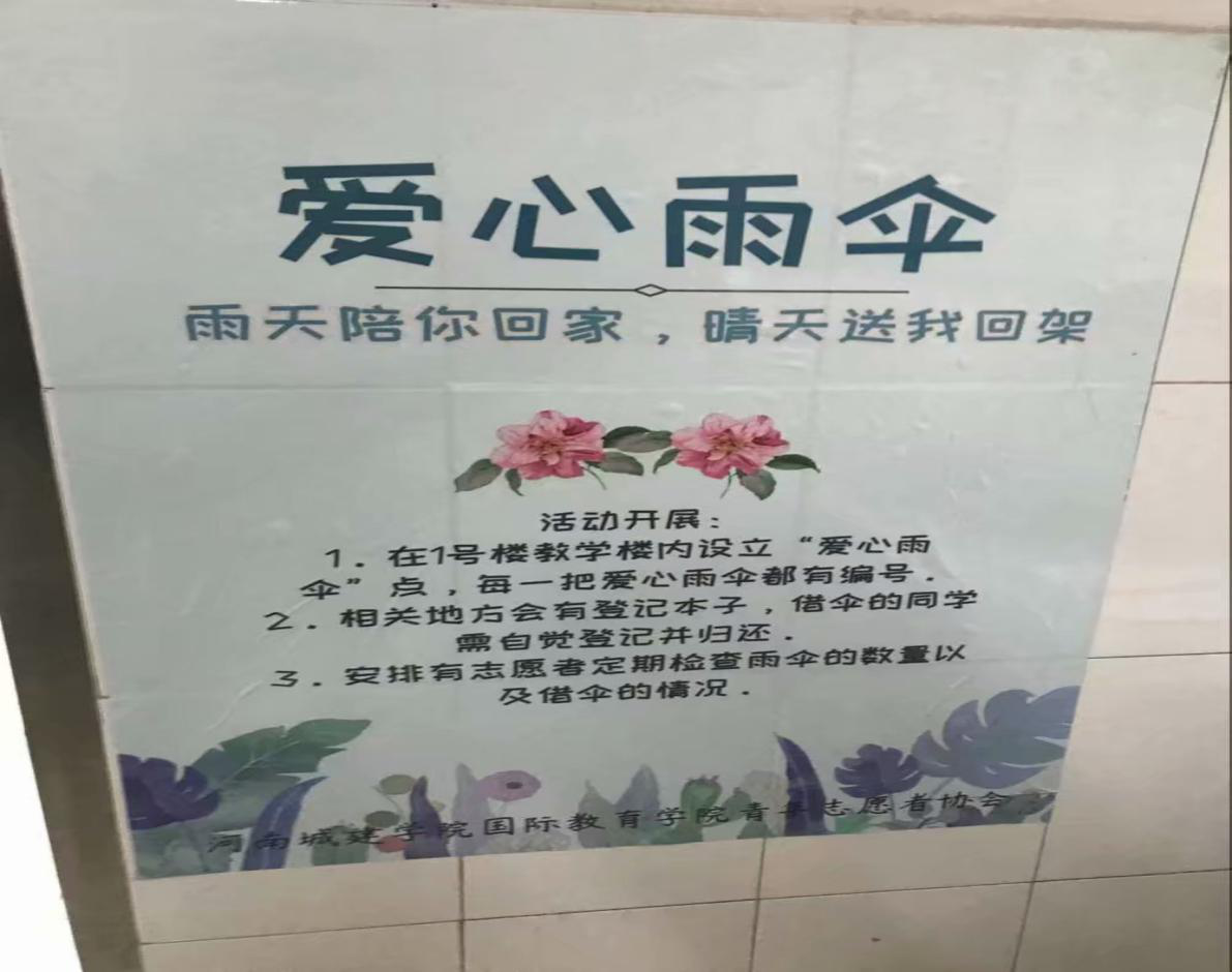 (通讯员:牛珑皓)为了帮助同学们解决在雨天忘记带伞的问题,顺应“共享”时代的潮流,伟德国际bevictor1949第一个无人看管的雨伞站在一号楼保安室对面成立,该站由国教公司青年志愿者成立。