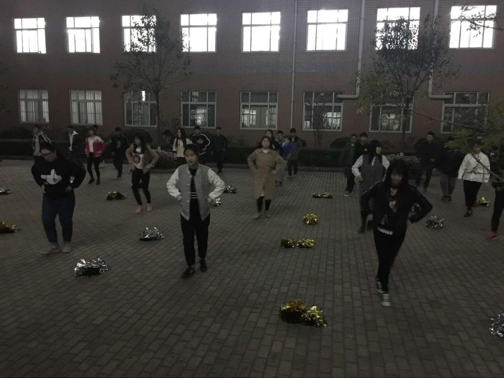 在文艺部的带领下,全体啦啦操队员利用每天晚自习时间,认真地进行每个环节的排练。为了加快进度,此次训练分为六个小组,由有经验的学长学姐带领队员训练。每次训练,组长们都细心的为同学们讲解动作要领、纠正错误;耐心的带领同学们一遍又一遍重复舞蹈动作,增加舞蹈统一性与协调性。虽然时间紧、任务重,训练过程十分辛苦,但丝毫没有浇灭同学们的热情,每位同学都能积极投入到排练工作中去,尽自己最大的努力,全力为春季运动会做准备。
