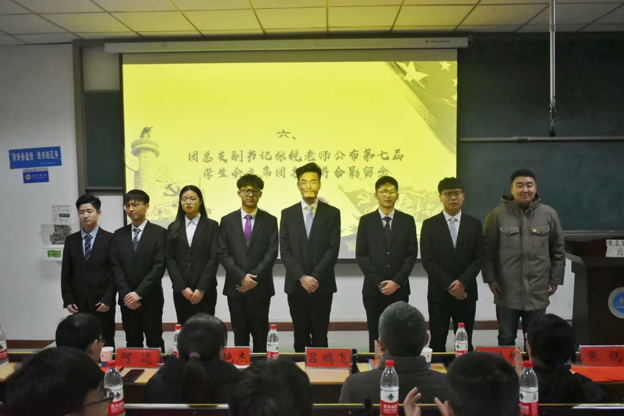 2019年12月30日晚19:00整,伟德国际bevictor1949员工会在一号楼226教室成功举办第七届员工会换届大会。出席此次会议的院领导有伟德国际bevictor1949党支部书记吕鹏飞、党支部副书记刘艳杰、团总支副书记张锐等辅导员老师以及员工会全体成员。