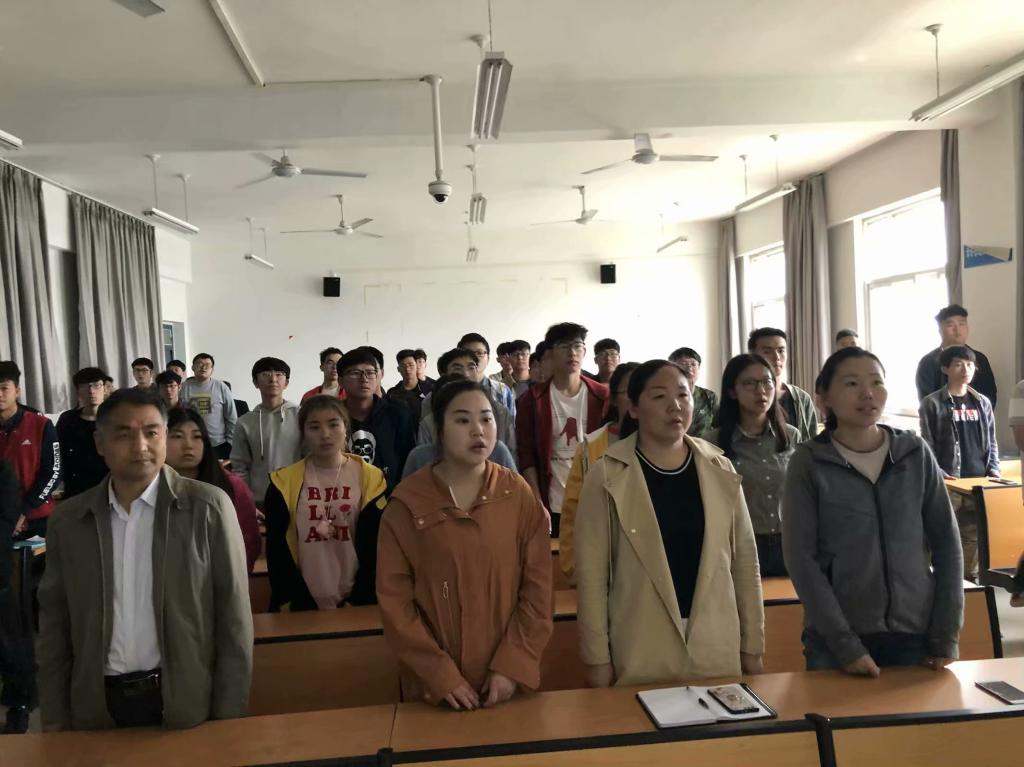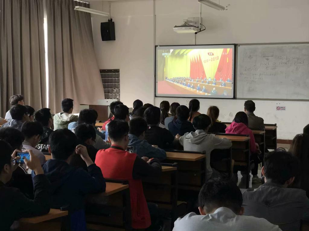 4月30日上午,伟德国际bevictor1949公司党支部副书记刘艳杰,辅导员段楠楠、闫艺超老师和优秀员工代表一起在文公司205教室观看了纪念五四运动100周年大会直播视频。