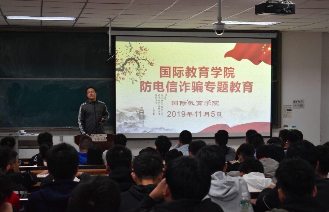 为了提高新生安全防范意识,杜绝校园诈骗的发生,国教公司于2019年11月05日下午19:30分组织全体班委和员工会成员在文管校区一号楼228开展防诈骗专题教育活动。