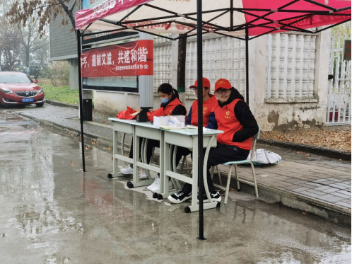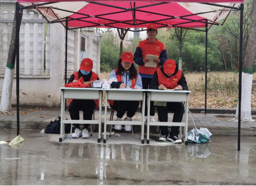 青协志愿者冒雨宣传