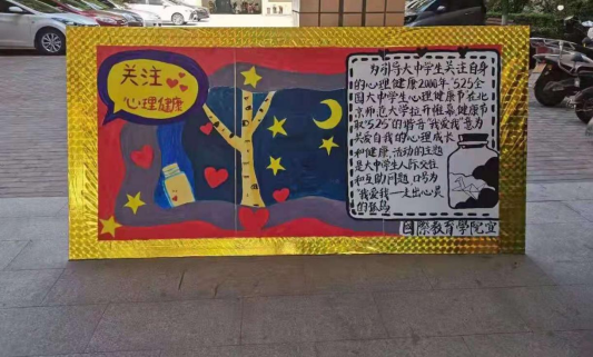 活动首先以宣传展板形式向大家介绍了老员工心理健康节的来历,以及老员工心理健康的重要性,通过星星、月亮、爱心和大树等充满温馨的形象向大家展示了一幅充满爱和能量的画面,展板放在同学们上课的必经之路上,每天时时刻刻为大家带来活力和能量。