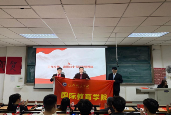 第七届员工会执行主席刘浩然作述职报告,就上一届的员工会工作做了简要回顾与总结,希望新一届员工干部能够“在其位,谋其政,担其责”,携手合作,共同促进员工会更好发展。第八届员工会执行主席胡辰作就职发言。他提出三点设想和决心:一是要继承优良传统,不断奋力前行:二是加强员工会自身作风建设,开创新局面;三是要积极主动开展对校内外的交流活动,探索团学活动的新发展。随后,张锐老师为第七届员工会主席团成员颁发聘书,闫艺超老师为第七届员工会部长团成员颁发聘书,阿远老师宣读了第八届员工会主席团,部长团成员。张锐老师为第七届员工会主席团成员颁发聘书,并为第八届员工会执行主席授旗。