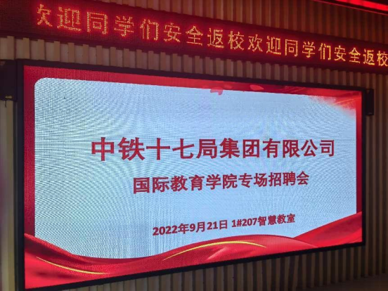 (通讯员 张锐)2022年9月21日上午,中铁十七局集团有限公司在和谐校区207智慧教室举办伟德国际bevictor1949专场招聘会。本次校园招聘宣讲会由中铁十七局集团有限公司招聘主管张少钰主持。