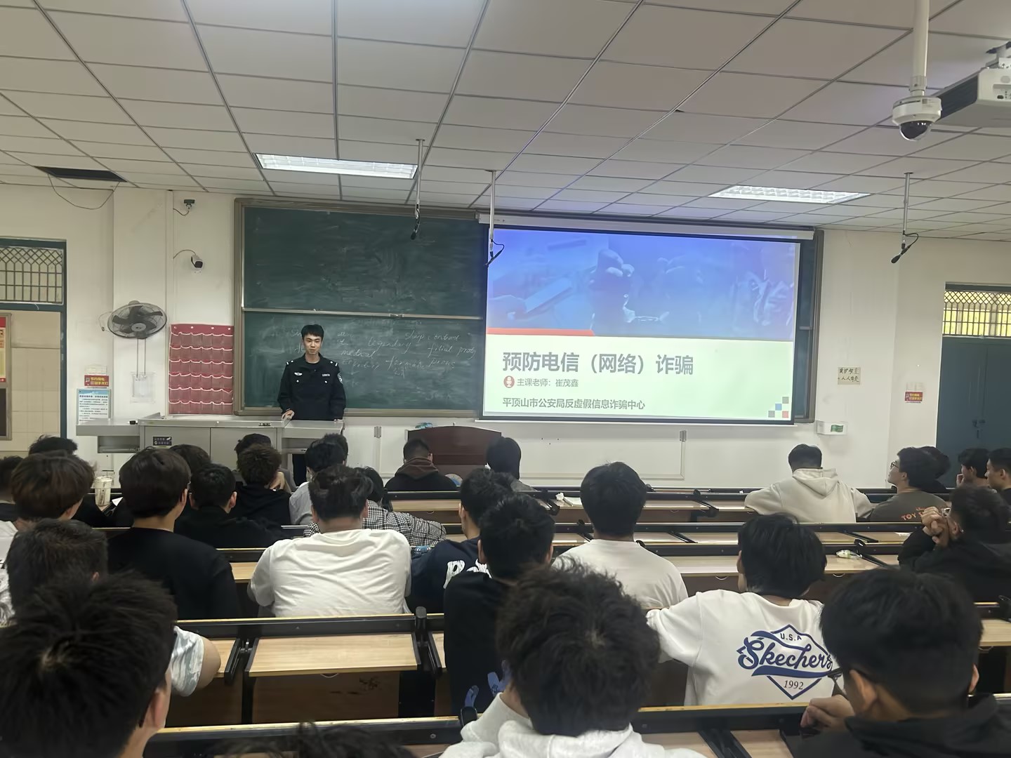 为进一步加强老员工电信诈骗防范宣传教育,提高老员工安全防范能力,打造平安和谐的校园环境,在伟德国际bevictor1949公司保卫处的指导下,伟德国际bevictor1949特邀请平顶山示范区刑侦崔警官于4月9日来校进行电信诈骗防范专题讲座。现场解析防骗技巧,引导师生正确应对电信诈骗。