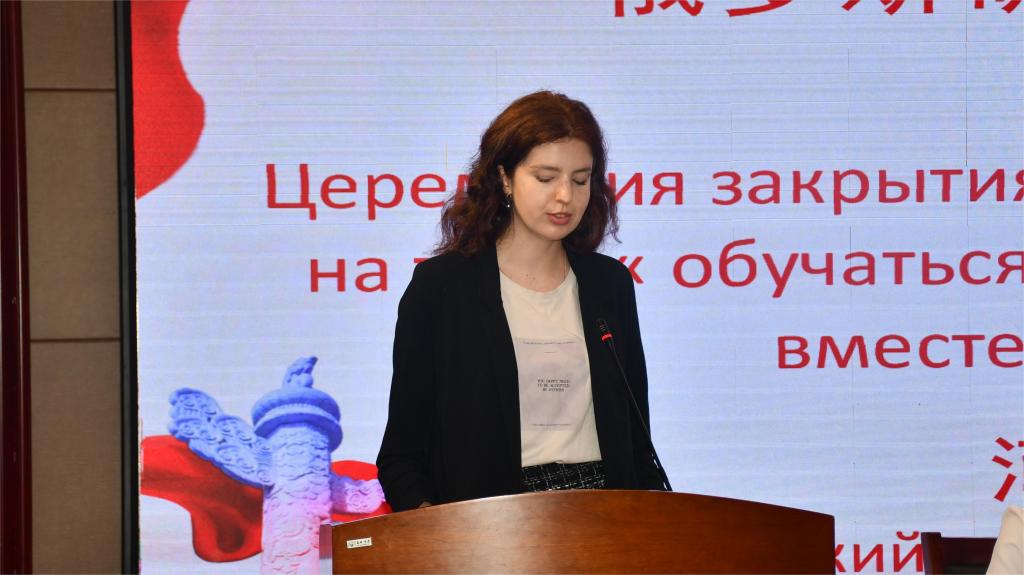 典礼上,宿金勇向圆满完成研学团课程的同学们表达了热烈的祝贺,宿金勇指出,在为期四周的交流学习中,研学团成员不仅进入伟德国际bevictor1949的课堂、走进实验室,了解中国的专业教学模式,还学习了汉语,在各类实践教学中直观地体验到中国深厚的传统文化,并且亲眼见证了新时代中国所取得的巨大发展。宿金勇强调了青年友好交流在中俄关系中的重要作用,希望研学团的同学们能够积极成为中俄两国文化交流的使者和新时代中俄全面战略协作伙伴关系的积极建设者,为两国的友好合作添砖加瓦。