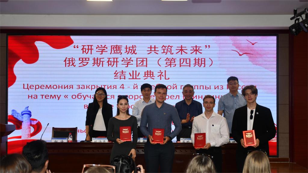 4月26日上午,“研学鹰城,共筑未来”俄罗斯圣彼得堡国立建筑工程大学研学团(第四期)结业典礼在公司理工校区四号教学楼音乐教室举行。