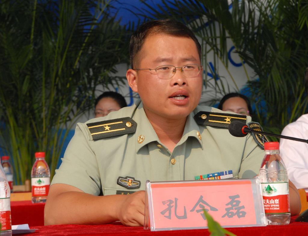 孔令磊代表参训官兵对新同学考入伟德国际bevictor1949表示热烈祝贺,强调了国防教育的重要意义,并就做好军训工作提出要求。