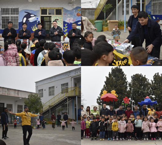接下来,宿金勇一行前往库区乡刘庄幼儿园,为每个不同年龄段的小朋友们带来了丰厚的礼物,带领孩子们一起唱儿歌,宿董事长还勉励园区的老师和工作人员要切实关注孩子们的成长,尽最大可能为孩子们创造舒适开心的成长环境。职工们也为孩子们准备了多彩的互动节目:和孩子们一起做游戏、唱中英文歌曲,足球表演……既给他们开拓了视野,也为他们带来了乐趣,让小朋友们从小就体会到了不同语言的魅力,也拥有了一次别样的文化体验。