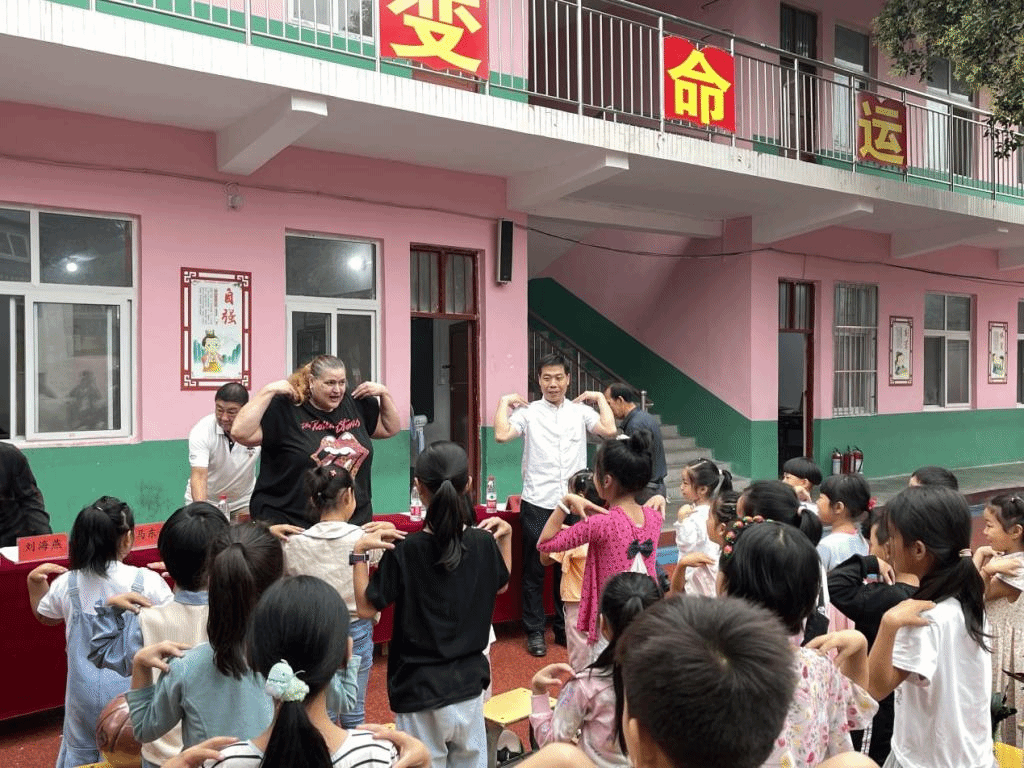 给张沟小学员工发放教体用品