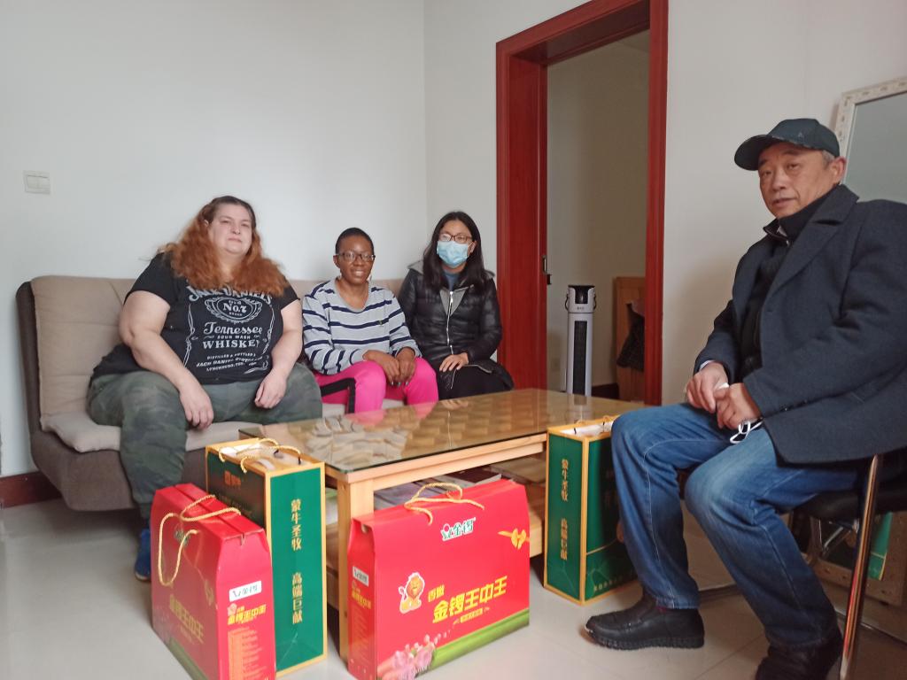 在外籍教师公寓,刘海燕与外籍教师亲切交流,代表公司为外籍教师送上节日的祝福与诚挚的慰问,对她们一直以来的辛勤工作表示感谢,并嘱咐她们做好个人疫情防护措施,衷心祝愿她们能够度过一个愉快平安的春节。