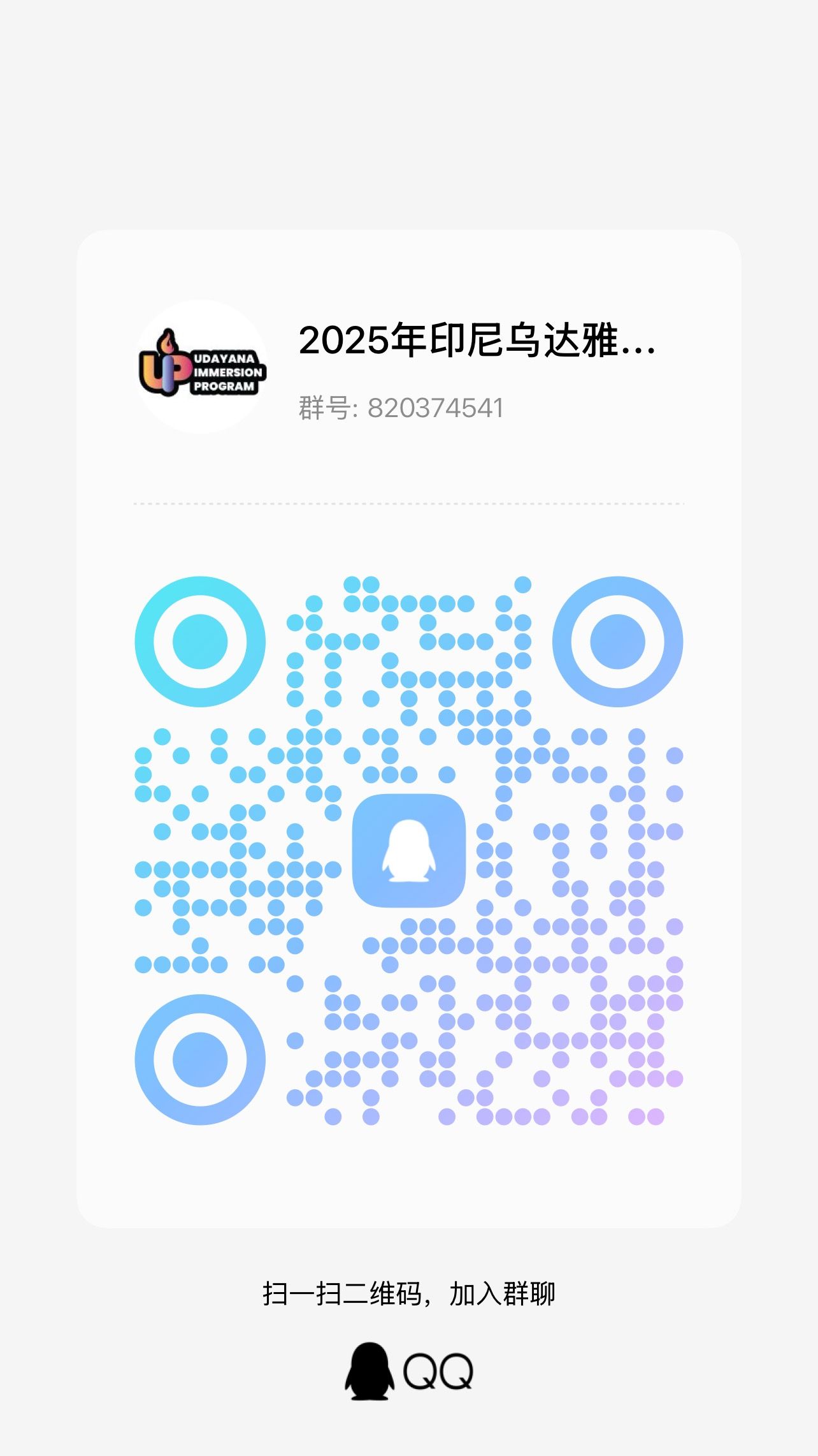 项目具体咨询和申请,可扫描《2025年印尼乌达雅纳大学夏季研学项目简介》(附件2)内二维码进QQ群了解。