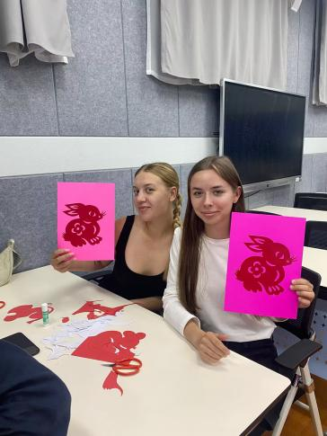 剪纸课上,研学团员工动手剪下、粘贴作品,沉浸式体验中国传统剪纸文化