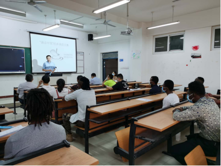 王许涛发言致辞,他指出职工在中国学习期间,除了学好专业知识外,也要积极学习中国文化知识,这样不仅可以提升自己的汉语知识水平,而且能更好地融入社会环境,丰富自己的留学体验。他鼓励员工们尽情展示,赛出风采。