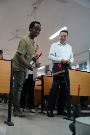 接下来就是趣味活动时间,活动分为三个环节:投壶,击鼓传花和你画我猜。大家都争先恐后的参加各项活动,中外师生欢聚一堂、载歌载舞,谱写了友谊新篇章。